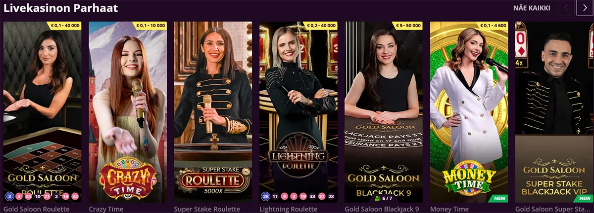 Live-kasinomme tuo oikean kasinon tunnelman kotiisi. Ammattitaitoiset jakajat palvelevat reaaliajassa HD-kuvanlaadussa.